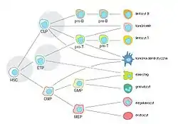 | История дифференцировки клетки | Зигота → Бластомер → Эмбриобласт → Эпибласт → плюрипотентные стволовые клетки → ... → CFU-GEMM (промиелобласты) |