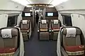 Стандартно, поезда представлены в трехклассной компоновке. Кресла вращаются, чтобы пассажир всегда сидел по ходу поезда. В вагонах есть традиционный и европейский туалеты.