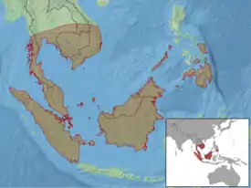 Вид распространён в Таиланде, Вьетнаме, на полуострове Малакка, Зондских и Филиппинских островах.