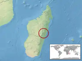 Северо-восточный Мадагаскар (Anosibe An’Ala region, Moramanga Province); Tarzanville (19°19’50.3’’ S, 48°13’22.5’’ E, на высоте 847 м)[1].