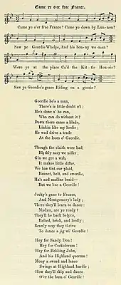 Cam Ye O’er Frae France (~ «Из Франции прибыли?») — песня периода якобитских восстаний, грубо высмеивающая короля Великобритании Георга I и его приближенных. Эта песня приобрела популярность среди фолк-исполнителей Великобритании в 60-е годы XX века. Её исполняли фолк-рок-группа Steeleye Span, Юэн Макколл, Дик Гохан.