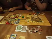 - Взять жетон пирамиды и передвинуть одного верблюда, получив из пирамиды случайный кубик
