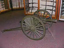 Каждая пушка оснащалась орудийным передком, который перевозил 14 зарядных ящиков, по 16 снарядов в каждом, и запасные инструменты и приспособления.[4] Некоторые орудия оснащались орудийным щитом. При транспортировке к треноге крепились колёса.