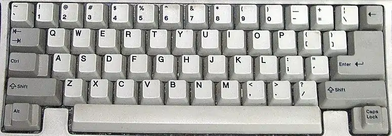 Алфавитно-цифровой блок клавиатуры IBM Model F. Клавиша ⇪ Caps Lock расположена в справа внизу, а на её месте — клавиша Ctrl