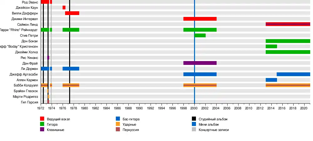 - Lee Dorman — бас (1971—1973, 1973, 1976—1978; умер в 2012)