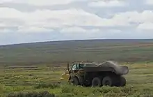 Шарнирно-сочленённый самосвал фирмы Caterpillar около Хальмер-Ю