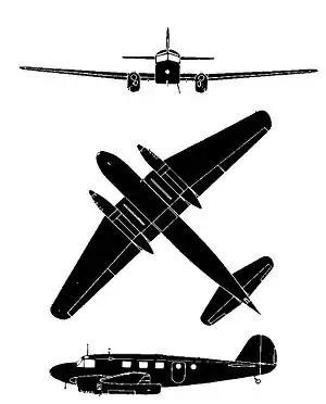 Самолёт представлял собой двухмоторный низкоплан смешанной конструкции: силовой набор и обшивка из дерева, носовая и верхняя секции фюзеляжа металлические. Шасси убираются в мотогондолы отделаны металлом. В стандартной конфигурации салона внутри находятся 6 пассажирских кресел для пассажиров, носовая часть занята багажным отделением (доступ через боковой люк), в кормовой части расположен туалет.