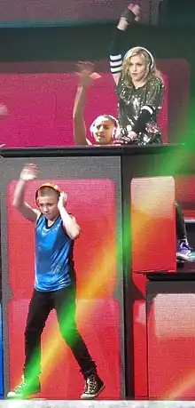 В качестве финального номера The MDNA Tour (2012) был исполнен ремикс Бенни Бенасси на «Celebration», дополненный лирическими и музыкальными элементами «Give It 2 Me» (2008). После того, как Мадонна закончила исполнять «Like a Prayer» (1989), свет погас, и звучат колокола, использовавшиеся в начале «Girl Gone Wild», который открывал каждый концерт, где они звучали несколько минут.[34] Когда песня началась, на задних экранах образовались трёхмерные цветные кубики, а сцена была залита разными цветными огнями и лазерами.[35] Мадонна вышла, одетая в а-ля Жанна д’Арк, с чёрными узкими брюками, металлической рубашкой и кристаллами Сваровски, и спела песню, пока её танцоры исполняли хореографические движения по всей сцене.[36] К концу представления они надели Beats by Dr. Dre и подражали движениям в стиле DJ .[37][38] На некоторых шоу сын Мадонны Рокко Ричи присоединялся к ней для выступления.[39]