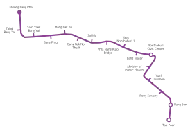 Сиреневая линия метро носит официальное название Ротфайфамаханакхон Сайчалонграттхам (англ. MRT Chalong Ratchadham line, тайск: รถไฟฟ้ามหานคร สายฉลองรัชธรรม) — это одна из двух линий метро системы