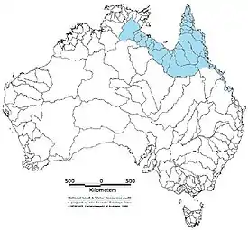 Эндемик Австралии. Распространён в штатах Северная территория и Квинсленд. Населяет пресноводные реки вокруг залива Карпентария.