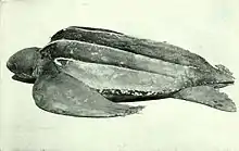 Ко́жистая черепа́ха (лат. Dermochelys coriacea) — единственный современный вид из семейства кожистых черепах (Dermochelyidae). Это самые крупные современные черепахи: длина тела достигает 2,5 метров, вес — 600 кг, размах передних ласт — 5 м[18]. У крупнейшей измеренной кожистой черепахи полная длина тела составляла 2,6 м, размах передних ласт — 2,5 м, а масса — 916 кг.