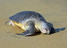 Атлантическая ридлея (лат. Lepidochelys kempii) — вид, являющийся самым маленьким из семейства морских черепах[12]. Вид занесён в красную книгу и находится под угрозой вымирания[13].
