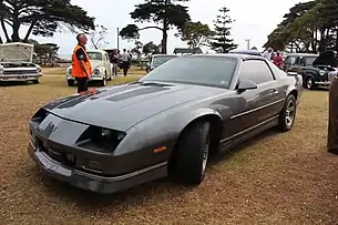 Зато спортивная ветвь автомобиля активно развивалась. В те годы фирма Chevrolet была генеральным спонсором Международной гонки чемпионов (англ. International Race of Champions), которая проводилась на специально подготовленных Camaro. Так что в 1985 модельном году появилась IROC-Z, сначала как дополнительная опция спортивной версии Z28, а потом и как отдельная модель. Автомобиль имел надпись Camaro по центру передка, противотуманные фары по бокам от неё, окрашенный в тон кузова более низкий аэродинамический обвес понизу, крупные надписи IROC-Z на дверях, оборудовался спортивным шасси со специальными колёсами и шинами и использовал самые мощные двигатели[50]. В этом модельном году все версии Camaro получили небольшое внешнее обновление: решётка радиатора, подфарники, нижний спойлер спереди, воздухозаборники и задние фонари стали новыми, а на модели Z28 появились новые, «в решёточку» декоративные накладки на капоте[51].