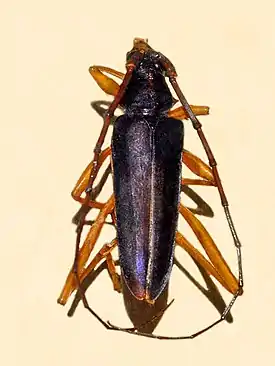Довольно крупные, металлически-зелёные или фиолетовые жуки. Голова вытянутая, слегка удлиненная. Усики тонкие и длиннее тела. Ноги довольно длинные, не утолщенные, часто красноватые.