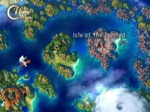 В конце концов, Серж попадает в форт Драконию, где преследующий его Линкс — человекообразная пантера — устраивает Сержу ловушку и с помощью артефакта под названием «Слеза дракона», меняется с ним телами[3][17]. Кид, не заметившая подмены, доверяется Линксу в теле Сержа, и он ранит её кинжалом. Беспомощный побеждённый Серж ничего не может сделать, и Линкс отправляет его в загадочное вневременное место под названием Мироворот. Линкс промывает мозги Кид, заставляет поверить, что Серж (в теле Линкса) — её заклятый враг. Тем временем Сержу удаётся выбраться из Мироворота с помощью загадочной девушки Арле. Он обнаруживает, что соединяющая миры червоточина перекрыта и решает вернуть своё тело, а также выяснить, почему произошло разделение миров десять лет назад[14][17]. Серж отправляется в таинственное Мёртвое Море — застывшую во времени область Эль Нидо, наполненную руинами из далекого будущего[3][19]. Здесь он встречает человека по имени Мигель (отец его подруги Лины, как он выясняет в дальнейшем). Он, а также призраки Хроно, Лукки и Марл, персонажей из Chrono Trigger, которые охраняют Мертвое Море по заданию глобальной системы, суперкомпьютера, который называется Судьба[3]. Они объясняют Сержу, что факт его существования обрекает Родной мир на полное уничтожение. Пытаясь защитить Замёрзшее пламя, Судьба уничтожает Мёртвое Море, но команду Сержа неожиданно спасает Небесный дракон, один из шести Богов-драконов Эль Нидо[17].