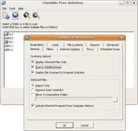 ClamWin — свободный антивирусный сканер под Windows 98/ME/2000/XP/2003/Vista/7/8. Обеспечивает графический интерфейс к пакету Clam Antivirus.