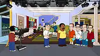 - В эпизоде присутствуют Хэнк Хилл из мультсериала «Царь горы», Барт Симпсон из мультсериала «Симпсоны», Стьюи Гриффин из мультсериала «Гриффины» (он произносит коронную фразу Барта «Эй, карамба!») и пародия на Джулию Робертс.