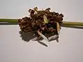 Повреждения Juncus effusus и чехлик C. caespitiella