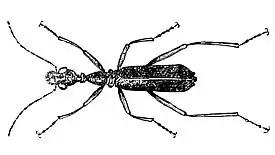 Жуки-скакуны среднего и крупного размера с крупными глазами (20-27 мм). Отличается тонким и очень стройным телом и длинными ногами. Основная окраска тела синевато-чёрная. Верхняя губа трапециевидной формы с 7 зубцами, 2 крайние отделены от центральной группы глубокой выемкой. Предпоследний отдел максиллярных щупиков большой, дугообразный и опушенный. Переднеспинка удлинённая, сужена посередине, по форме напоминает песочные часы. Надкрылья узкие, субпараллельные. Задние крылья развиты, при опасности взлетают. Обитают на стволах деревьев и кустарников. Биология и жизненный цикл малоизучены[1].