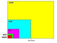 CIF был спроектирован для простого конвертирования между стандартами PAL и NTSC, с заявленным разрешением 352 x 288.