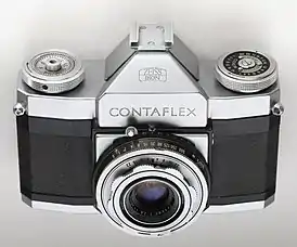 Почти до самого конца 1950-х годов инженеры Zeiss Ikon оставались приверженцами центрального затвора в зеркальных фотоаппаратах. В ФРГ у них появилось много последователей, создавших аналогичные Kodak Retina Reflex и Rolleiflex SL26[5]. Лишь в 1959 году был представлен Contarex с фокальным затвором, предназначенный в качестве конкурента японским «зеркалкам». От новой камеры Contaflex получил такие же быстросменные магазины для оперативной замены типа фотоматериала при дневном свете в любом месте отснятого ролика[16]. С первой до последней модели Contaflex имел съёмную заднюю стенку и допускал двухкассетную зарядку, в том числе шторными двухцилиндровыми кассетами системы Contax[17].