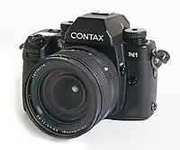 - Contax RTS III — профессиональный фотоаппарат с цельнометаллическим корпусом, отдельные детали которого изготавливаются из титана. Аббревиатура RTS (сокращение англ. Real Time System) означает использование системы заобъективного измерения света, отражённого от фотоплёнки (англ. TTL OTF). В отличие от обычного TTL-экспонометра, который также имелся в камере и измерял экспозицию через пентапризму перед срабатыванием затвора, система RTS учитывает изменения освещённости, происходящие непосредственно во время выдержки[37]. Главный отличительный признак этой камеры — керамический прижимной столик с вакуумным выравниванием фотоплёнки (англ. RTV — Real Time Vacuum) при помощи электромагнитного поршня[41]. Эта технология, заимствованная у аэрофотоаппаратов, позволяет практически полностью исключить геометрические искажения и значительно эффективнее использовать разрешающую способность объективов[42]. Contax RTS III — первый в мире серийный фотоаппарат, снабжённый такой системой выравнивания[43]. До этого вакуумный прижим использовался только в специальной аппаратуре, например Nikon F Navy Spy, предназначенном для фотограмметрии[44].