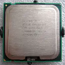 Core 2 — восьмое поколение микропроцессоров архитектуры x86-64 корпорации Intel, основанное на микроархитектуре Core. Это потомок микроархитектуры Intel P6, на которой, начиная с процессора Pentium Pro, построено большинство микропроцессоров Intel, исключая процессоры с архитектурой NetBurst. Введя новый бренд, от названий Pentium и Celeron Intel не отказалась, в 2007 году переведя их также на микроархитектуру Core, были доступны процессоры Pentium Dual-Core (не путать с Pentium D) и Core Celeron (400-я серия). Тогда воссоединились мобильные и настольные серии продуктов (разделившиеся на Pentium M и Pentium 4 в 2003 году).
