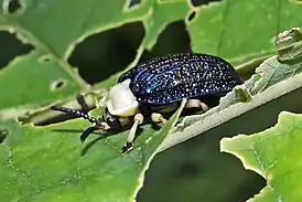 Как личинки, так и взрослые живут на растениях в основном рода Вербеновых ( Verbenaceae ) питаются с них.