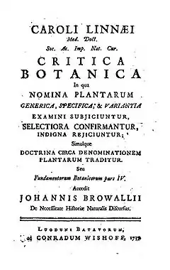 ![]() Титульный лист первого издания Critica Botanica (1737) | |