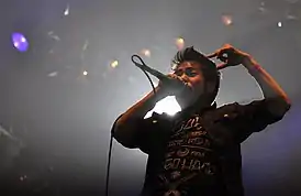 ![]() Вокалист Кэнта Койэ во время концерта в Бельгии 27 апреля 2013 года | |