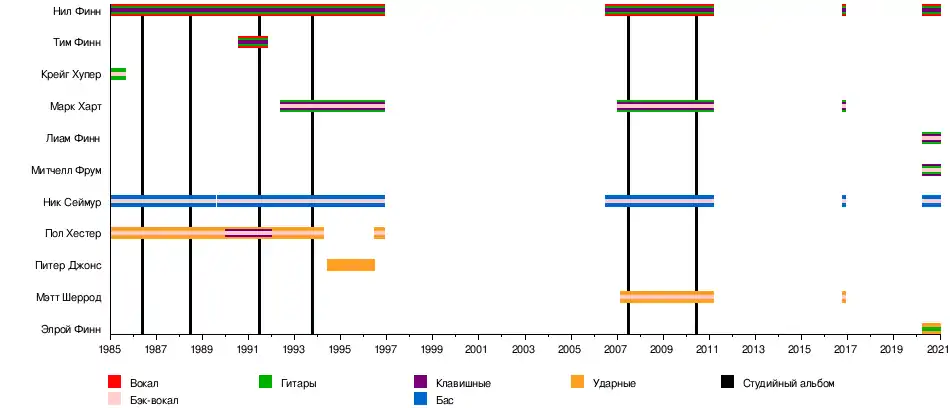 - Нил Финн — вокал, гитара, клавишные, фортепиано (1985—1996, с 2006)