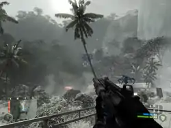 Crysis (МФА: [ˈkɹʌɪsɪs]) — компьютерная игра в жанре шутера от первого лица, разработанная немецкой компанией Crytek и изданная Electronic Arts. Первая игра одноимённой серии из трилогии[9][10][11]. Crysis был выпущен 13 ноября 2007 года в Северной Америке, 15 ноября в Австралии, 16 ноября в Европе, 23 ноября в Новой Зеландии и 29 ноября в Японии[1][2] для персональных компьютеров под управлением Windows. 18 сентября 2008 года, почти через год после выпуска, Crysis стал доступен для скачивания через интернет-сервис цифровой дистрибуции Steam[12][13][14][15][16].