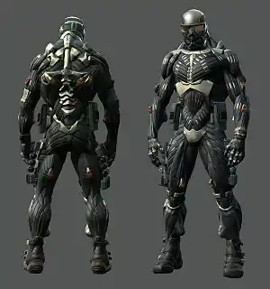 Идея создания и дизайн нанокостюма, по словам главного игрового дизайнера Бернда Димера (англ. Bernd Diemer), были вдохновлены американской военной программой United States Future Force Warrior 2020[35]. Эрик Лагель (англ. Eric Lagel), сотрудник компании Crytek, говорит, что нанокостюм — «это одна из главных „фишек“ Crysis, и мы просто не могли не включить его в мультиплеер. Нанокостюм — это всего лишь оружие, которого не было в других играх»[36].
