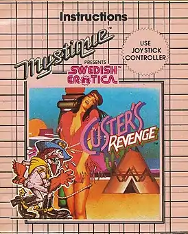 Custer's Revenge — эротическая видеоигра для взрослых, разработанная Mystique для Atari 2600 и выпущенная 23 сентября 1982 года. Приобрела в своё время скандальную известность из-за того, что основная цель в игре сводилась к тому, чтобы завершить половой акт с привязанной к столбу индейской женщиной[1].