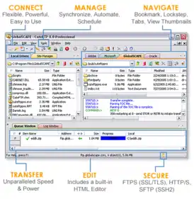 CuteFTP — условно бесплатный FTP-клиент для Microsoft Windows и Mac OS X, позволяющий безопасно и надёжно обмениваться файлами между локальным компьютером и серверами в Интернете.