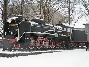 Паровоз D51-22 на привокзальной площади Южно-Сахалинска (2021 год).