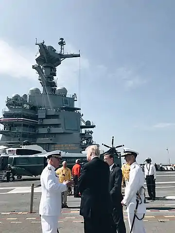 | Вид DBR с различных ракурсов, визит Президента США Дональда Трампа на борт суперавианосца «Джеральд Форд», корабля-носителя РЛС | ||