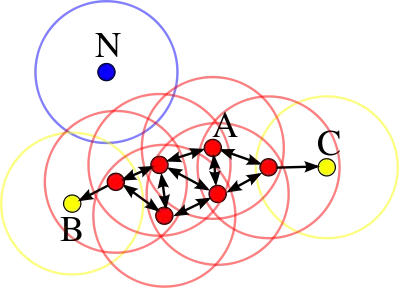 - Точка A q достижима из p, если имеется путь с и , где каждая точка достижима прямо из (все точки на пути должны быть основными, за исключением q).