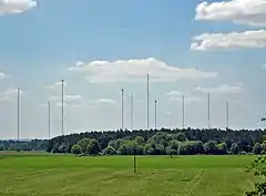 Передатчик DCF77 находится в Майнфлингене, Германия (в 25 км к юго-востоку от Франкфурта-на-Майне) и работает на частоте 77,5 кГц с мощностью 50 кВт.