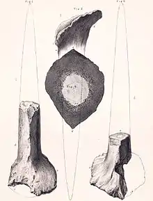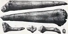 - J. Leidy, 1856, «Notice of remains of extinct vertebrated animals discovered by Professor E. Emmons», Proceedings of the Academy of Natural Sciences of Philadelphia 8: 255—257