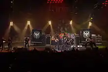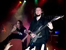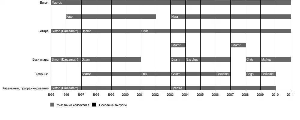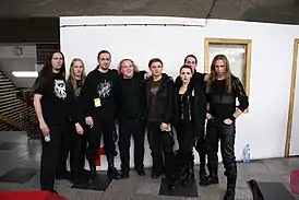 ![]() Слева направо: Chris, Darkside, Daamr, Роман Костржевски (как гость), Spectre, Nera, Flauros (позади Nera) и Bacchus. «Metalmania». 2007 год. | |