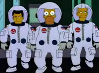 Рейс Бэнион, Гомер Симпсон и Базз Олдрин в составе космического экипажа | |