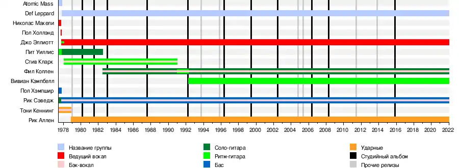 - Timeline (англ.). Def Leppard. Дата обращения: 30 июня 2016.