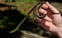 Это яйцекладущая змея. Самка откладывает до 5 яиц.