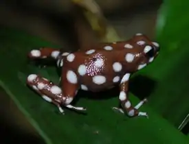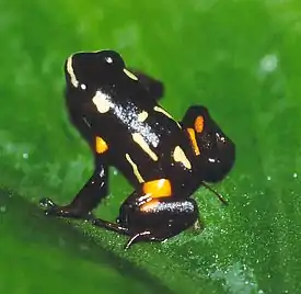Домен: Царство: Подцарство: Без ранга: Без ранга: Тип: Подтип: Инфратип: Надкласс: Класс: Подкласс: Инфракласс: Batrachia Надотряд: Прыгающие Отряд: Подотряд: Семейство: Подсемейство: Dendrobatinae |