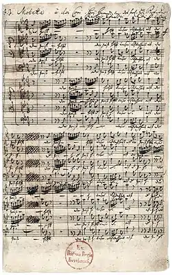 Первая страница мотета, рукопись И.С.Баха