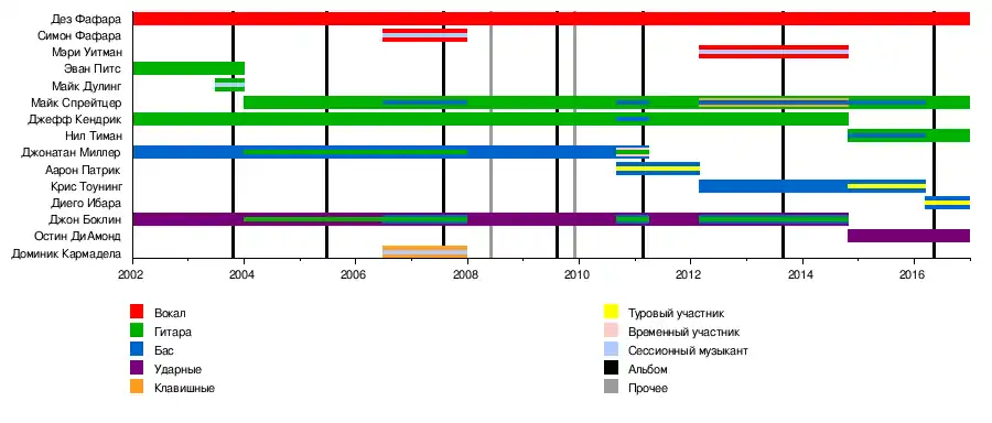 | Состав | Дез Фафара, Диего Ибарра, Майк Шпрейтцер, Нил Тиманн, Остин Дамонд |