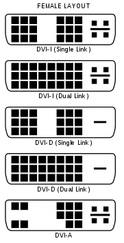 - DVI-A Single Link (A — Analog, аналоговый) — только аналоговая передача.