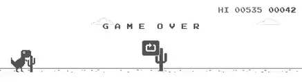 При столкновении с кактусом или птеродактилем игра заканчивается и экран останавливается, в середине экрана появляется кнопка для перезапуска игры. При этом у динозавра будут выпучены глаза.