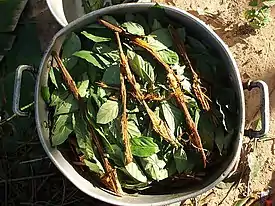 ![]() Стебли Banisteriopsis caapi и листья chacruna. | ||||||||||||